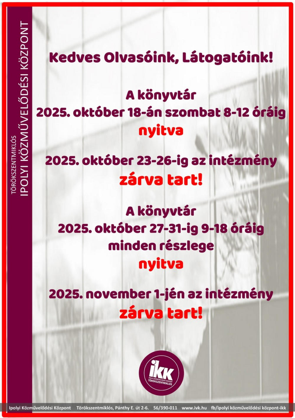 Telefon: 06 56 390-011 e-mail: tmiklos@mail.ivk.hu facebook